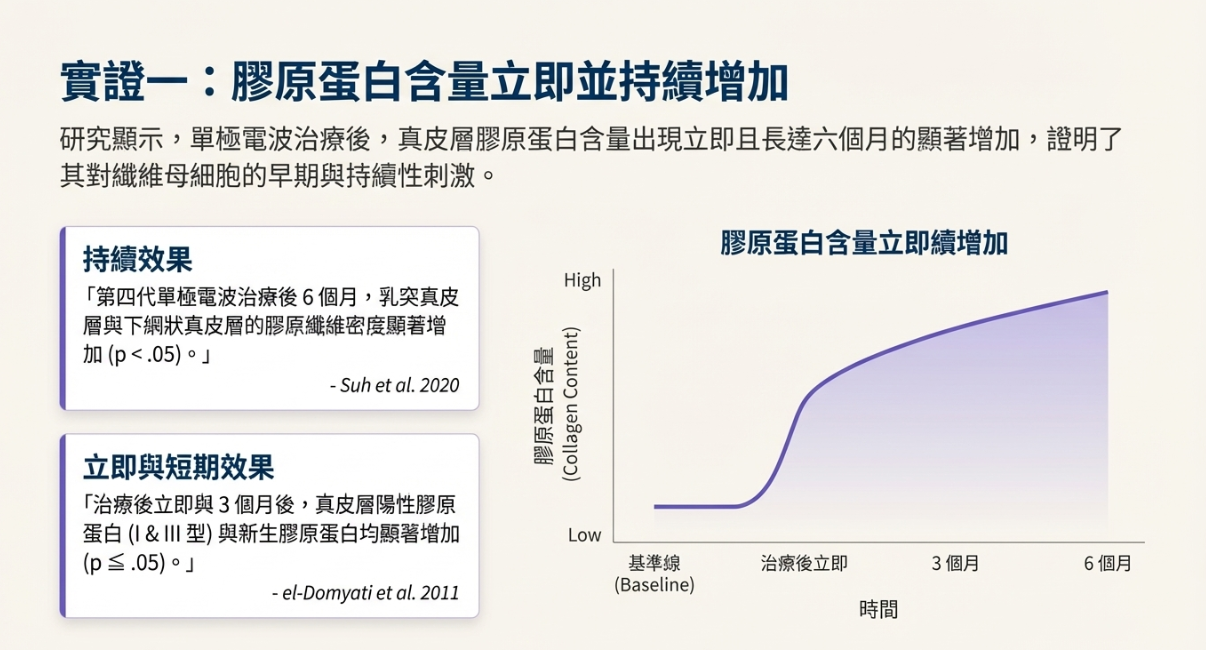 研究顯示,鳳凰電波治療後長達 6 個月以上,真皮層膠原纖維密度仍持續增加,這也是許多患者在治療後數月,反而覺得皮膚狀態持續進步的原因。