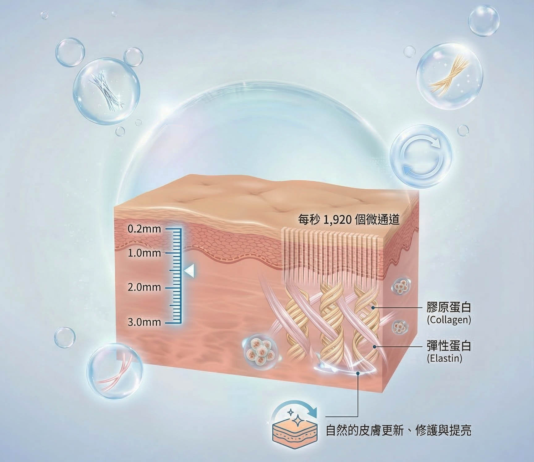 ˙經皮吸收:每次治療創造多達1920個微通道,搭配成分深層吸收。